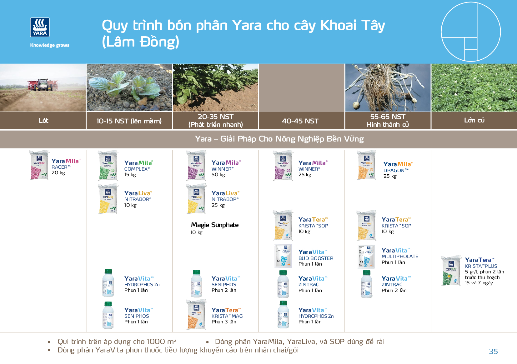 Tuyên bố miễn trừ trách nhiệm: Đối với kiến thức và sự hiểu biết tốt nhất từ phía Yara, thông tin trong tài liệu này là chính xác kể từ ngày biên soạn. Tuy nhiên, Yara không tuyên bố, bảo đảm hoặc cam kết về độ chính xác, độ tin cậy, tính đầy đủ, tính kịp thời và hoặc sử dụng của thông tin. Trách nhiệm của người dùng là xác định phù hợp và đầy đủ thông tin này đối với mục đích sử dụng hoặc mục đích cụ thể của người dùng. Nội dung thông tin phải được điều chỉnh cho phù hợp với điều kiện địa phương và người dùng phải luôn đọc nhãn hiệu cho từng sản phẩm trước khi sử dụng. Yara không nhận bất kỳ trách nhiệm pháp lý nào đối với bất kỳ tổn thất hoặc thiệt hại nào có thể xảy ra từ bất kỳ việc sử dụng thông tin này