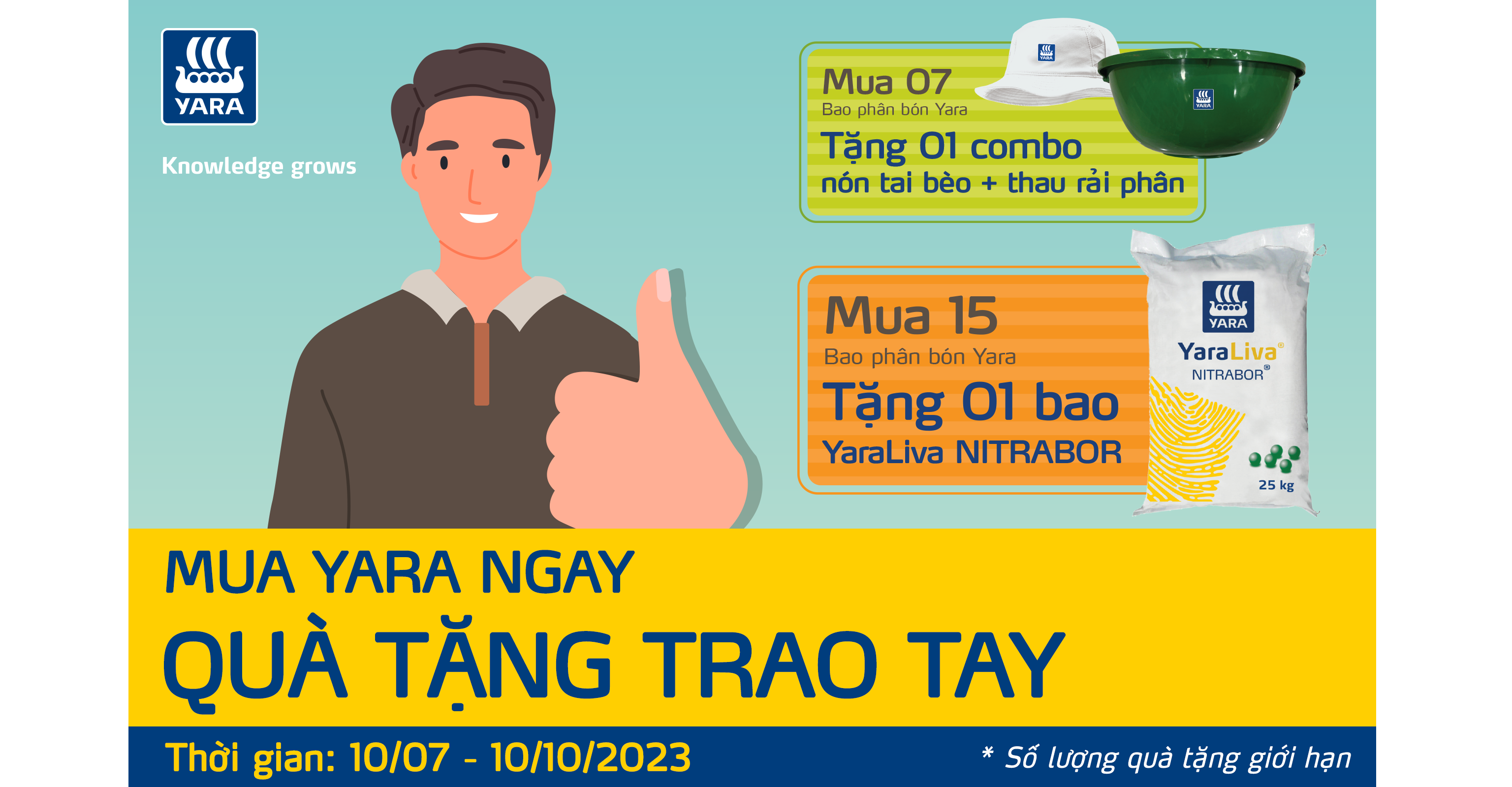Quý khách hàng khi mua phân bón Yara trong thời gian khuyến mãi sẽ nhận được những phần quà hấp dẫn từ Yara. Số lượng quà tặng có hạn nên quý khách hãy nhanh chóng mua hàng và đăng ký thông tin hóa đơn cho Yara nhé.